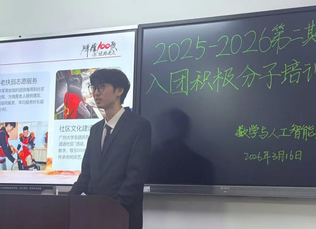 为深入学习贯彻习近平新时代中国特色社会主义思想,进一步加强对入团积极分子的培养教育,引导广大青年学生端正入团动机、坚定理想信念,我系于2026年3月14日至21日在1A401顺利开展入团积极分子系列培训课程,并在培训结束后组织结业考试,切实保障学习成效。