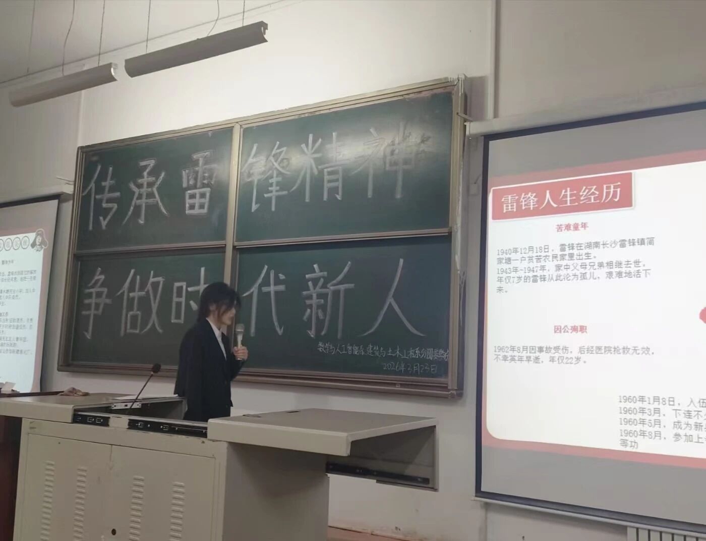 为深入弘扬雷锋精神,引导青年学子将奉献、友爱、互助、进步的品格融入日常,2026年3月23日晚7:30—9:30,388vip太阳集团、建筑与土木工程系在1C101教室联合举办雷锋精神主题宣讲活动。本次活动由马沂鑫、俎文君担任主讲,全校学生共同参与学习。