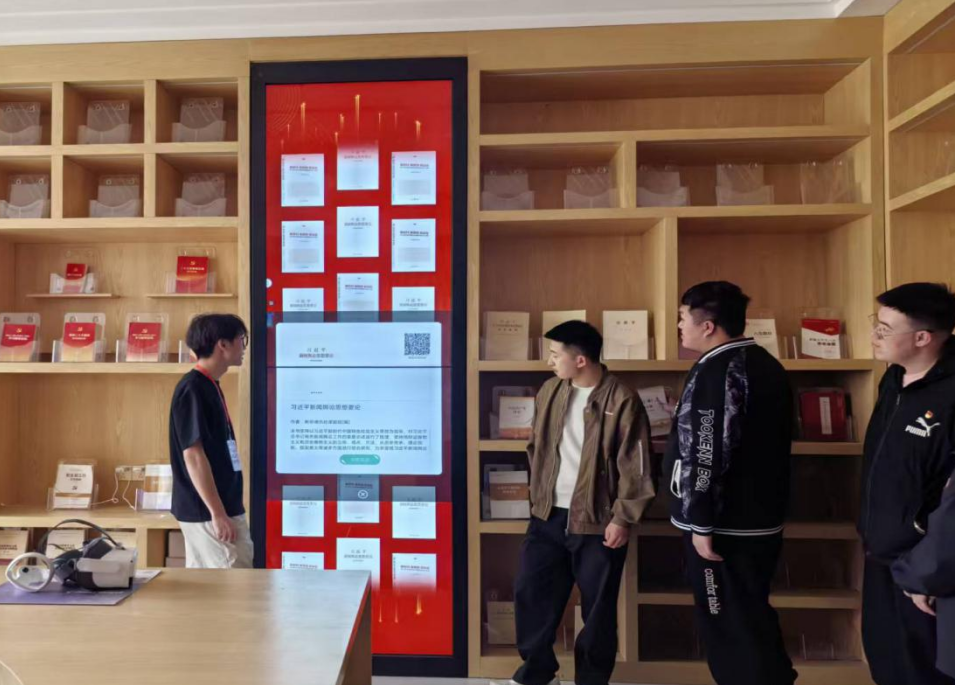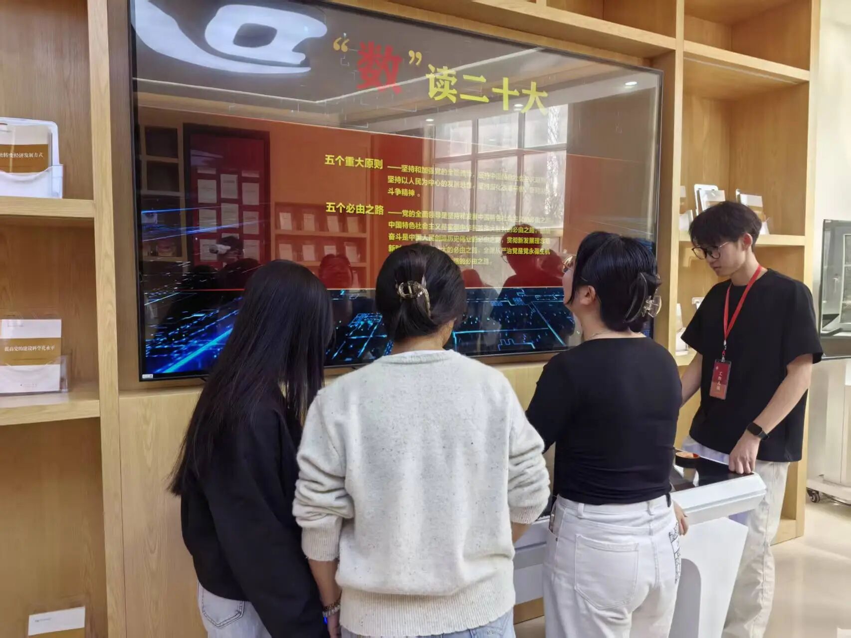 活动现场,在张钧杰的细致讲解与引导下,全体党员依次体验了智慧党建活动室的各项数字化学习设备。大家首先驻足智慧数字瀑布屏,这座“云端红色图书馆”收录海量红色经典、党史著作与视频资源,支持现场阅读与扫码带走,让红色学习突破时空限制,便捷又高效。