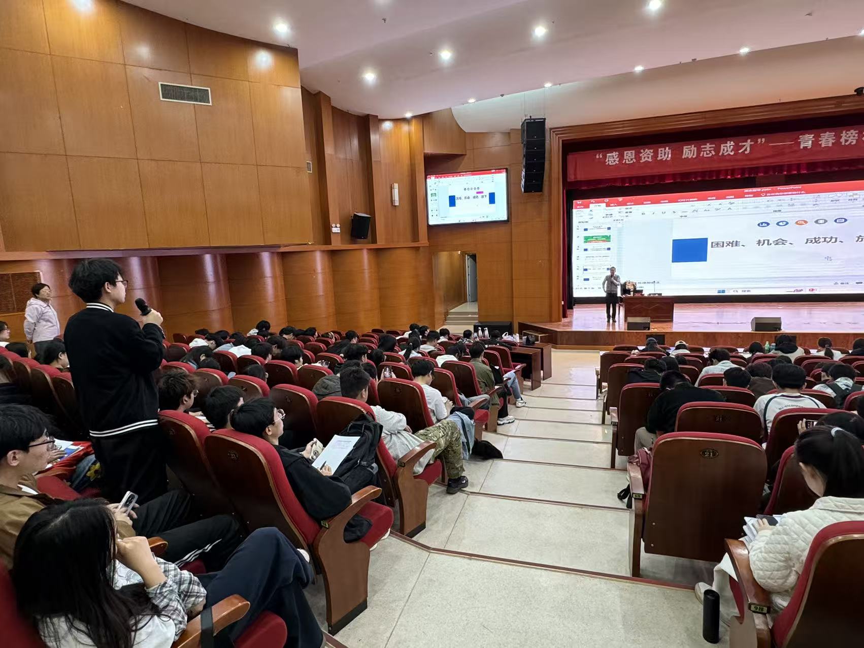 互动环节中,同学们踊跃提问,就职业选择、求职技巧、自我提升等问题与邹老师展开交流。邹老师耐心细致地解答疑问,结合数学与人工智能专业的特点,为同学们提供了针对性的建议,现场氛围热烈而有序。