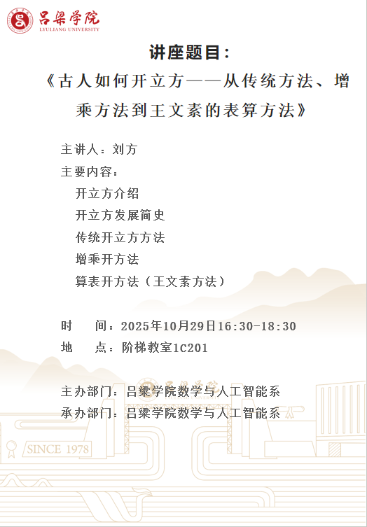 学术讲座:古人如何开立方——从传统方法、增乘方法到王文素的表算方法——刘方