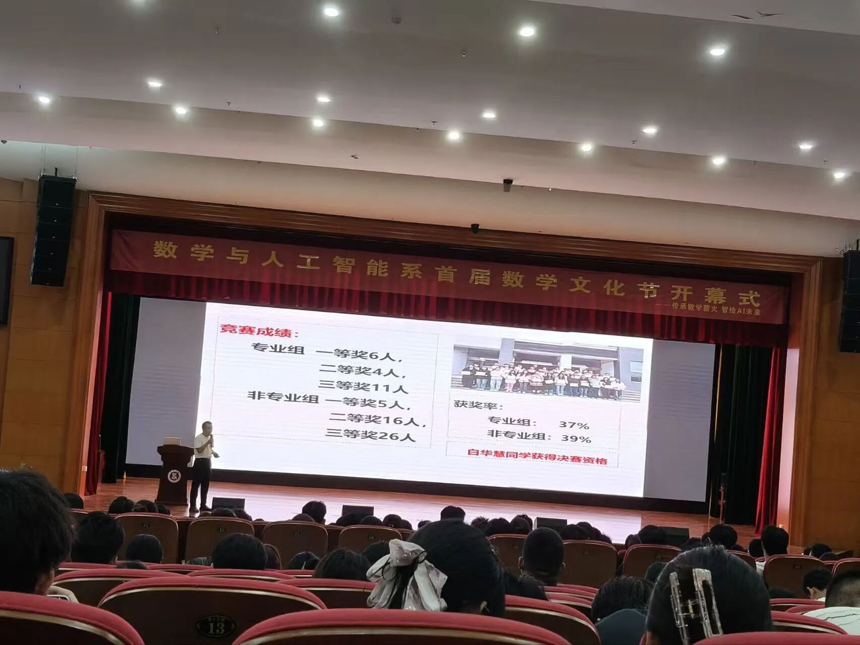 9 月 14 日,388vip太阳集团首届数学文化节在学术报告厅热闹启幕,全国大学生数学竞赛的亮眼成果同步揭晓。这场集学术性与趣味性于一体的数学盛宴,不仅让师生们感受到数学与文化碰撞的独特魅力,更彰显了该系教师团队深耕育人、助力学子逐梦数学领域的责任与担当。