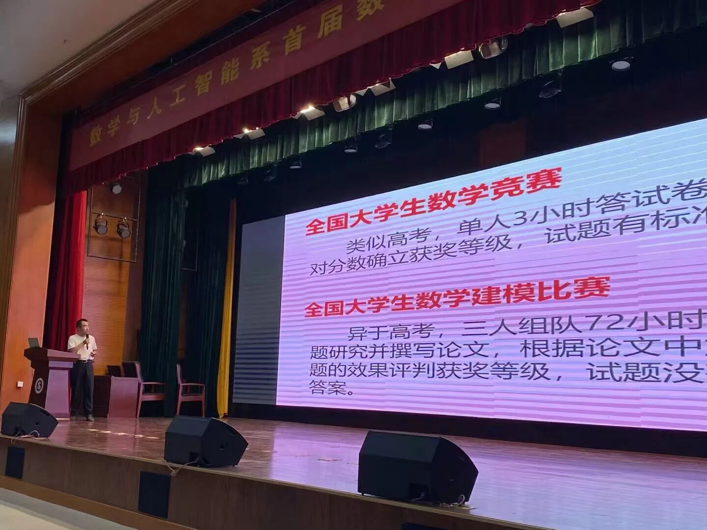 文化节的热闹氛围中,白建军老师化身 “竞赛科普员”,借助活动契机向在场师生系统介绍了全国大学生数学竞赛的两类核心赛事。其中,全国大学生数学竞赛类似高考,需单人在 3 小时内完成试卷,凭借绝对分数确定奖级,试题有标准答案,重点考验个人解题能力与知识储备;而全国大学生数学建模比赛则要求三人组队,在 72 小时内完成课题研究并撰写论文,无标准答案,以解决问题的效果评判,更侧重团队协作与实践应用。