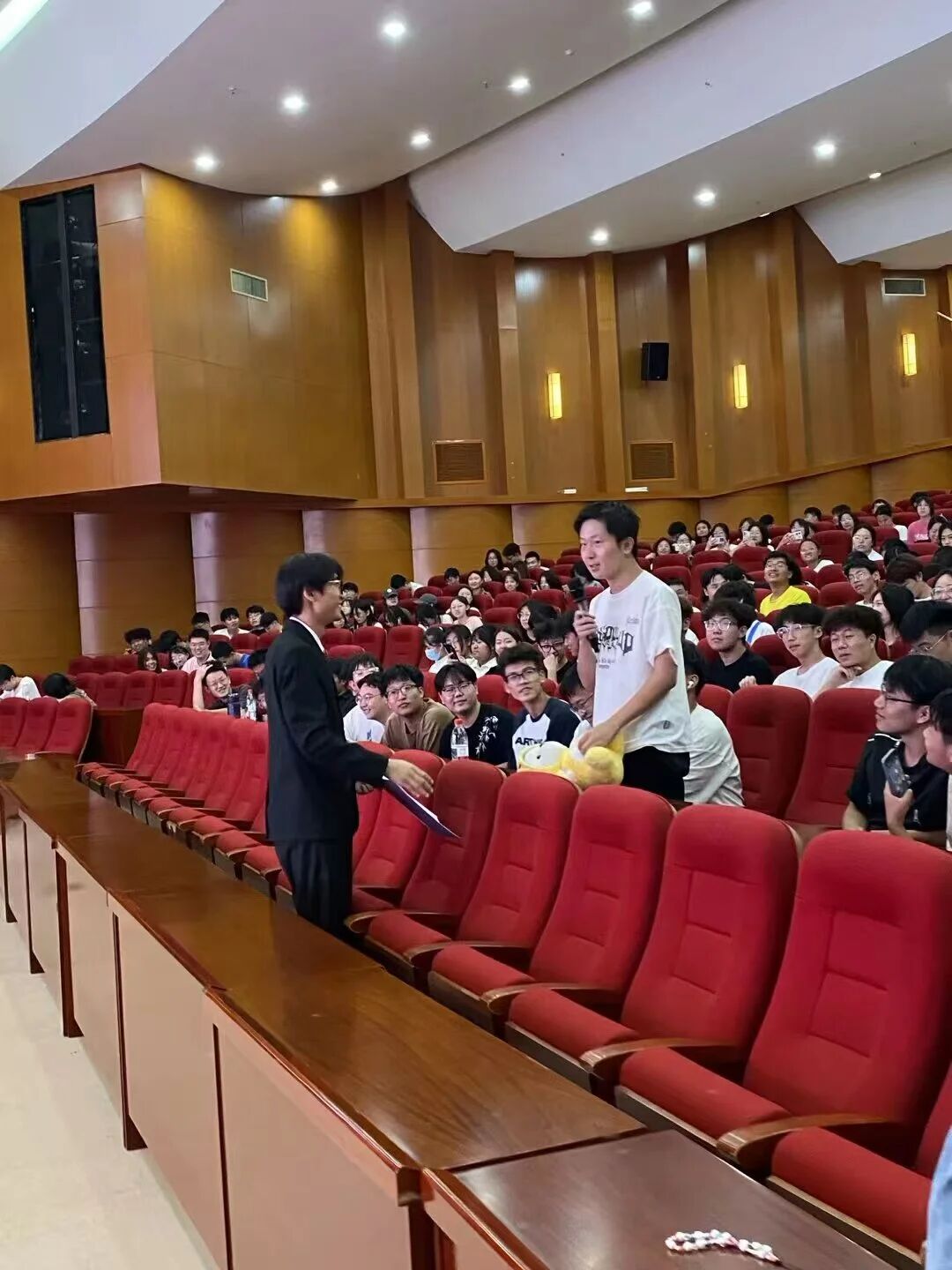 若说数学是理性的诗篇,那歌声便是感性的注脚。在趣味活动环节,人工智能 2401 班的汪林枫率先登场,带来经典歌曲《十年》。熟悉的旋律在报告厅内流淌,瞬间拉近了与现场师生的距离,温馨氛围弥漫全场。紧接着,信科 2501 班的范蕾以清澈透亮的嗓音演绎《想想念念》,让在场师生沉浸在青春独有的纯粹与美好之中;随后,该班史雅倩演唱的《探窗》更是赢得阵阵掌声。